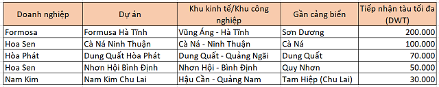 Một số nhà máy thép lớn tại miền Trung. |